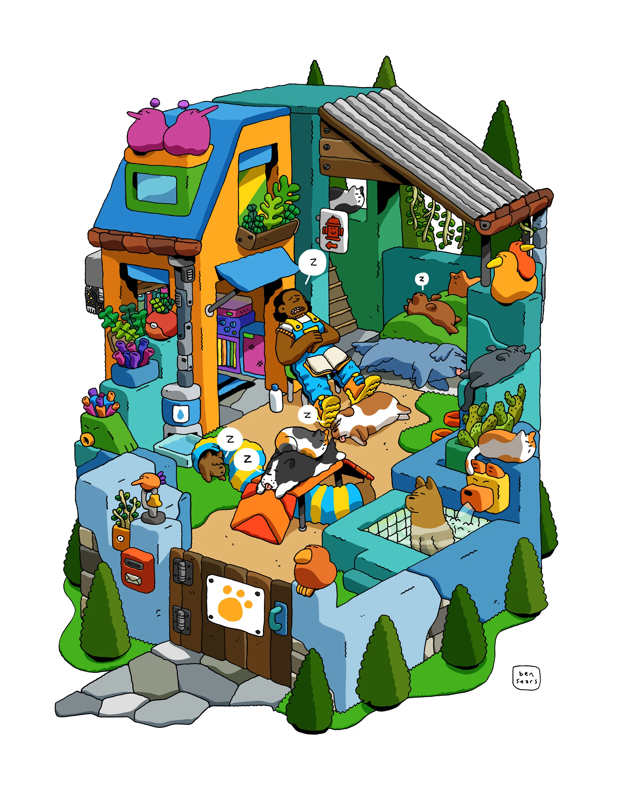 Ben Sears is a cartoonist, illustrator, and musician from Louisville, KY. His clients include Image, Wacom, Cartoon Network, Netflix, and Oni Press, among others. His Double+ characters have also appeared in a number of zines and online anthologies, where the protagonist is usually in over his head.